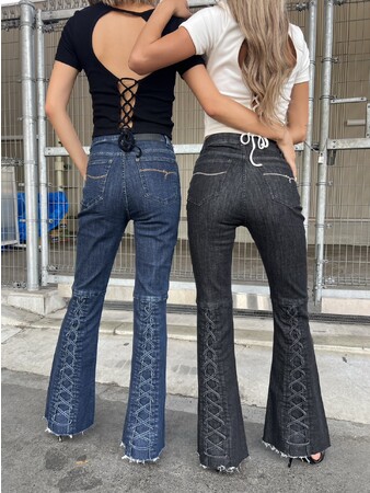 商品名:BackレースUPフレアデニムパンツ