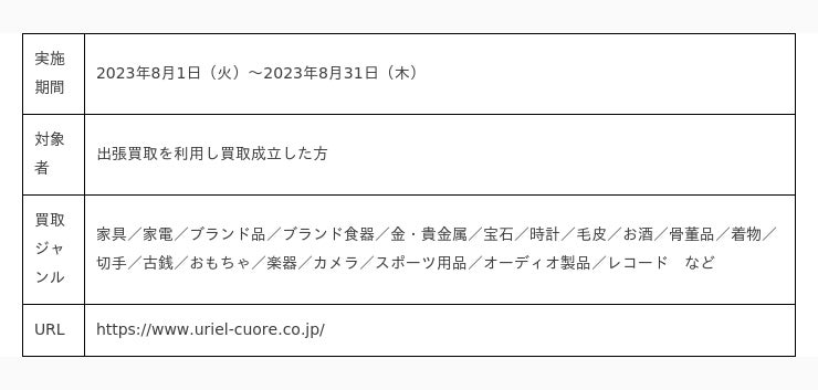 出張買取ページ:https://www.uriel-cuore.co.jp/visit/