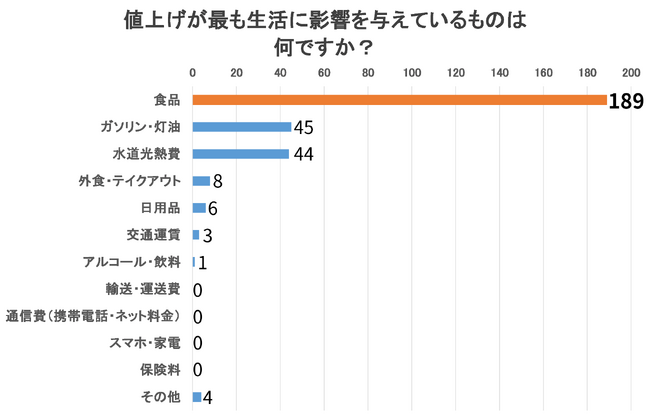 では、値上げが最も生活に影響を与えているものは何でしょうか?