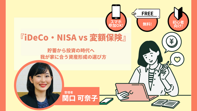 当日は、2017年4月からFPとして活動しこれまで1000世帯以上の相談実績がある、講師の関口 可奈子様を迎えて「iDeCo・NISA vs 変額保険貯蓄から投資の時代へ我が家に合う資産形成の選び方」に関するオンラインセミナーを実施いたしました。