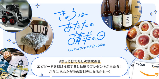 X(旧:Twitter)で「#きょうはあなたの請求の日」を付けて、請求に関するエピソードを投稿するとストーリー動画に出演しているスモールビジネスの皆様が実際に手掛けている商品などが当たります。