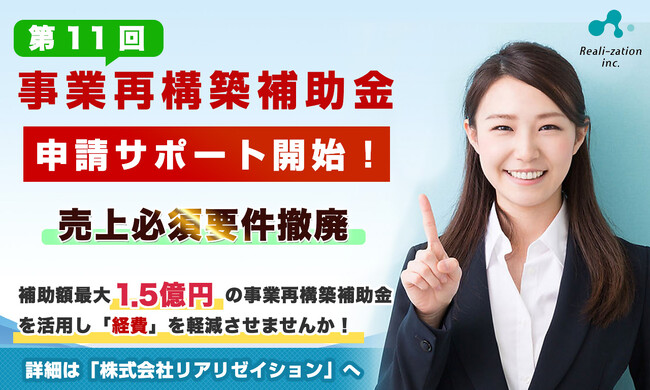 リアリゼイション、「第11回事業再構築補助金」申請サポート開始!「成長枠」にも対応