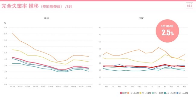 2023年6月度の有効求人倍率は1.30倍。完全失業率は2.5%労働市場データレポート(2023年6月度版)