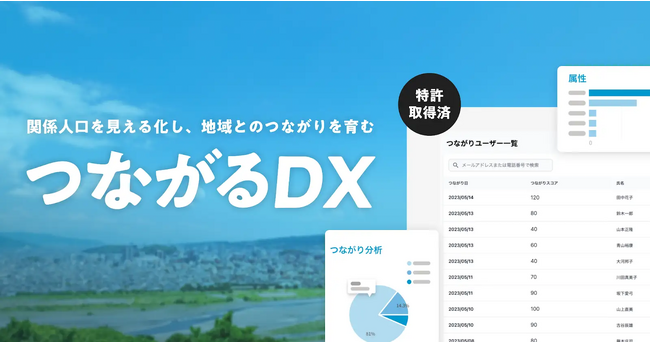 「つながるDX」は、地域に関わる人々との関係性を育み、未来につなげるオールインワンシステムです。地域ファンクラブ会員、イベント参加者、移住問い合わせ者、ふるさと納税寄付者など、多様な形で地域と接点をもつ人々のデータを一元管理。施策横断でのつながり深度を把握できるほか、つながり深度に応じてメール配信ができます。不明瞭になりがちなデータ(人数や行動属性、関係の深さ)をデジタルで見える化・一元管理し、効果最大化と効果検証の簡易化、業務効率化を提供しています。
