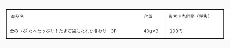 株式会社Mizkan (本社:愛知県半田市、代表取締役社長兼CEO:吉永 智征、以下:ミツカン)は9月1日(金)から「金のつぶ たれたっぷり!たまご醤油たれひきわり」を東北・関東で新発売いたします。本商品は、東海・北陸・近畿エリア限定で発売しておりましたが、この度販売エリアを拡大することを決定いたしました。