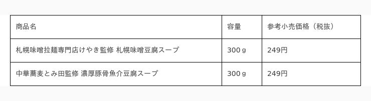 1人前から楽しめる!札幌味噌拉麺専門店けやき・中華蕎麦とみ田監修の豆腐スープを新発売!