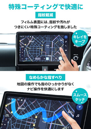 なめらかな指すべりを実現し、快適なナビ操作をサポートします。