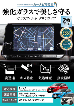 ノート / オーラ / サクラ 9インチ NissanConnect ナビゲーションシステム 専用ガラスフィルムです。貼りやすい固定用シール付きで、お得な2枚セット。カスタムパーツのお供に