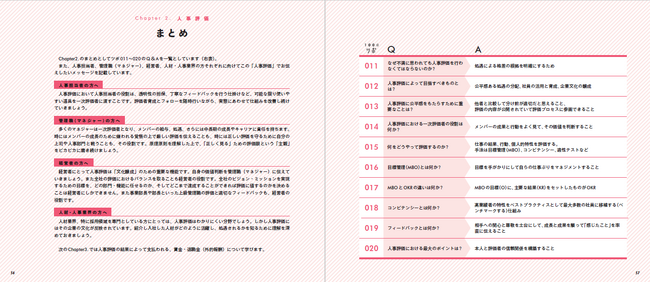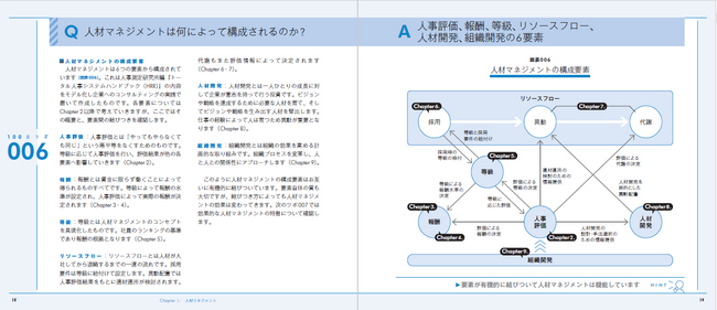 100のツボは見開きで完結しており、気になるツボだけを「つまみ食い」することが可能。手元に1冊置いておくことで、手引書として使えます。また、全体を読めば構造的に人材マネジメントを把握できます。