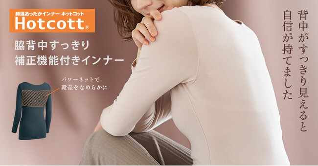 累計販売枚数1,400万枚(※1)の綿混あったかインナー「Hotcott(ホットコット)(R)」シリーズ初の補正機能付きタイプが登場! 8月24日(木)より新発売