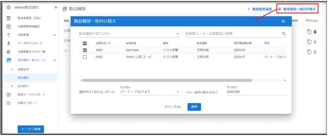 従業員の勤怠種別を一括で付け替えられるようになりました。