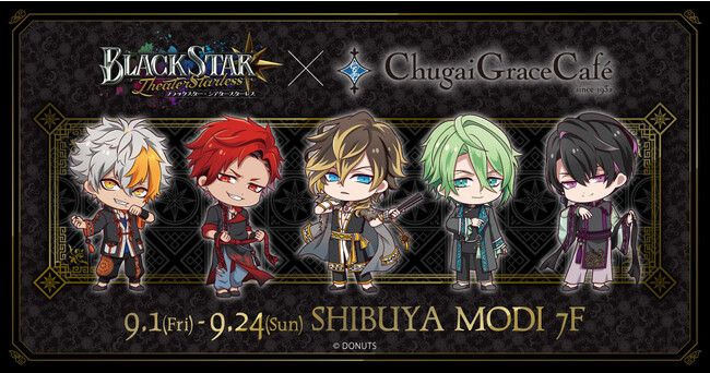 渋谷モディでは「中華」をテーマにしたコラボカフェ「『ブラックスター -Theater Starless-』 × Chugai Grace Cafe」を9月1日(金)~9月24日(日)の期間に同時開催いたします。入場予約、タイムテーブル、コラボメニューやコラボグッズなど詳細は以下特設ページにてご確認ください。