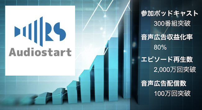 デジタルオーディオ広告ネットワーク「Audiostart」、参加ポッドキャスト数300番組を突破、音声広告による収益化率80%を達成