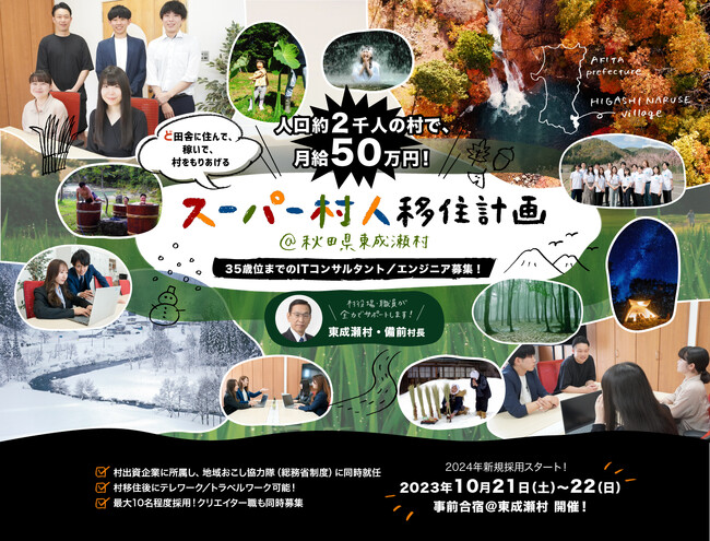 東成瀬テックソリューションズ株式会社(以下、なるテック)は秋田県東成瀬村と慶応義塾大学特任教授の若新雄純氏と共同で、「スーパー村人移住計画」を実施します。