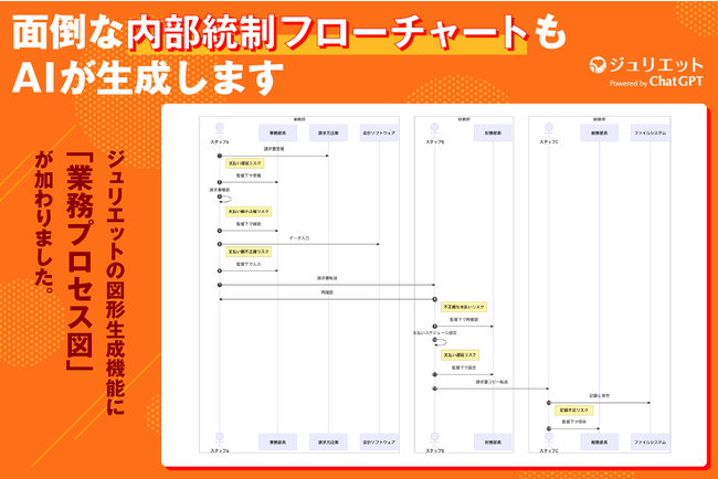 AIが「業務プロセス図(内部統制フローチャート)」を自動生成:ChatGPT搭載の「ジュリエット」が新機能リリース