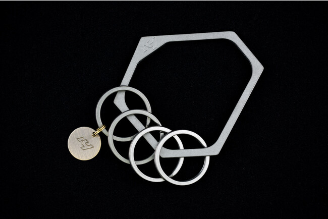 <特徴>ノスタルジックなクライミングギアをモチーフにしたキーハンギングリング。キーホルダーとしての使い方だけでなく、カラビナホルダーや小物などを1箇所にまとめておくのにも便利なサイズ感です。