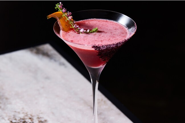 「季の梅 京都プラムアンドベリーリキュール」をベースに、自家製梅シロップとラズベリーの果実を合わせたショートカクテル。一口で梅の濃い香りが一気に広がり、続いて甘酸っぱいラズベリー、余韻に梅シロップが再び香る、情熱的で甘美な味わいが魅力の1品です。グラスにはのし梅を添え、華やかな装い、梅の香りとともにお楽しみいただけます。