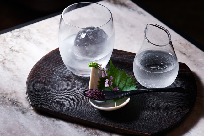京都産のジン「季の美 京都ドライジン」に、渉成園の梅で作った自家製梅シロップを合わせました。熟成により梅の美味しさを存分に抽出した梅シロップ×ジンをロックで楽しんだ後は、トニックウォーターを注いでお好みの割加減に。シソの香りとゆかりの塩味で味わいの変化もお楽しみいただけるカクテルです。
