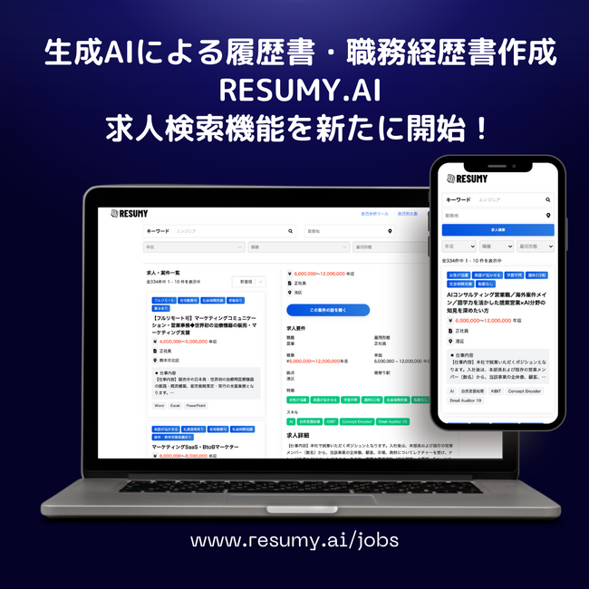 本リリースの詳細は、RESUMY.AI のサービスサイト(https://www.resumy.ai/jobs)をご覧ください。