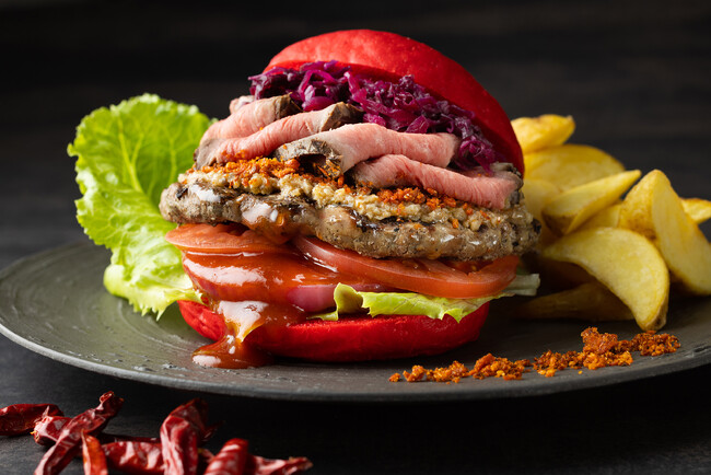 コートヤード・バイ・マリオット 新大阪ステーション 2種のお肉の食感とスパイシーさと辛味を味わう秋限定「SPICY RED! DOUBLE BEEF BURGER」を発売