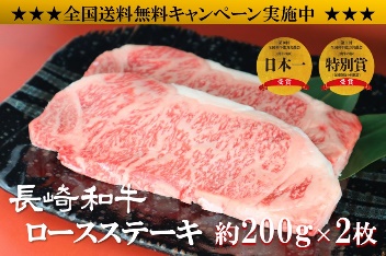 〇【送料無料】長崎和牛 ロースステーキ200g×2枚