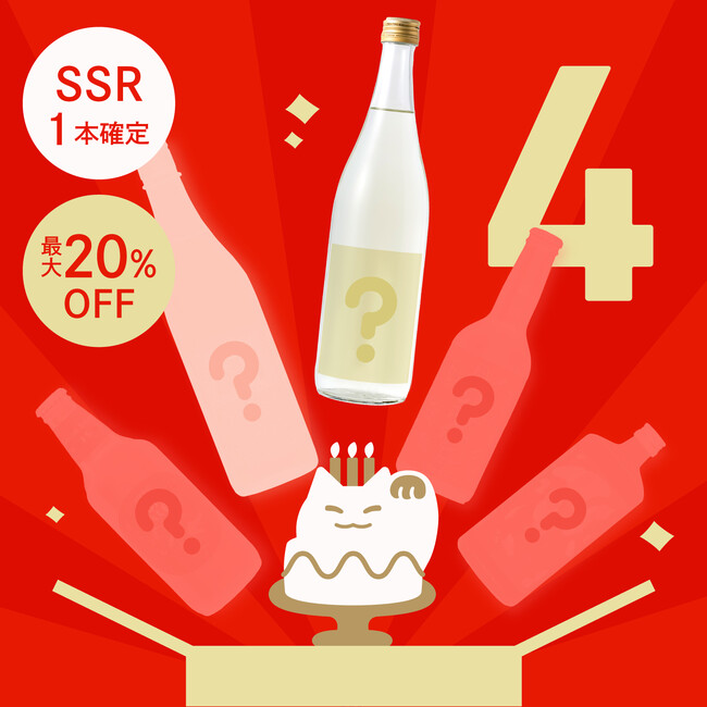 創業祭限定酒ガチャは、5周年記念ボトルをすべてのお客さまに必ずお届けするほか、レア確率アップで最大20%OFFや、SSR(スーパースペシャルレア)のレア酒が1本確定など、特別な日を祝うのにふさわしい限定プランです。