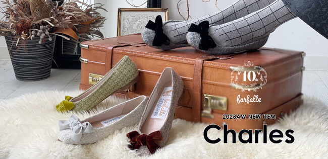 <トレンド素材>ツイードとベロアリボンのバレエシューズ【farfalle/ファルファーレ】10周年記念シューズ発売「Charles/シャルル」、再生ウールをアッパー材に使用