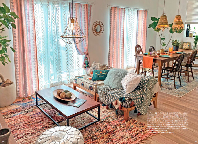 今回はそのラインナップの中から、新作カーテンやラグを使ったコーディネートの実例や小物の合わせ方など、おしゃれな部屋作りのアイデアを、撮りおろしの写真と共にご紹介しています。