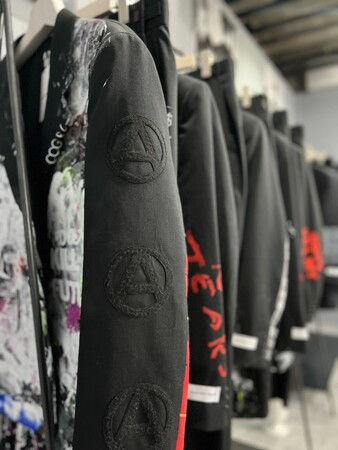 テイラーブランド"ANARCHIST TAILOR"と、アーティストWATARU KOMACHI氏とのコラボレーションコレクションの展示受注会をDIET BUTCHER直営店舗のDB&BARにて開催中