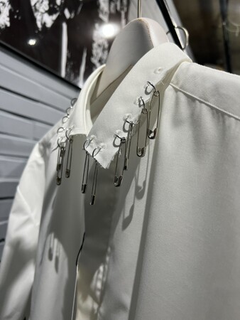 あえて BLACK に統一したクラシックなセットアップの上に、WATARU KOMACHI氏により1点ずつハンドペイント・コラージュが施され、 punk+couture を合わせた造語 "パンクチュール" コレクションとなっています。