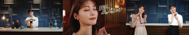 新CMでは、生見愛瑠さんが一人二役で登場し、初めてバリスタに挑戦!。新商品「プレミアムカフェ」の、素材にこだわった贅沢な味わいを表現するリッチな雰囲気や、コーヒーの美味しさと香りを体験した生見さんの表情にご注目ください。