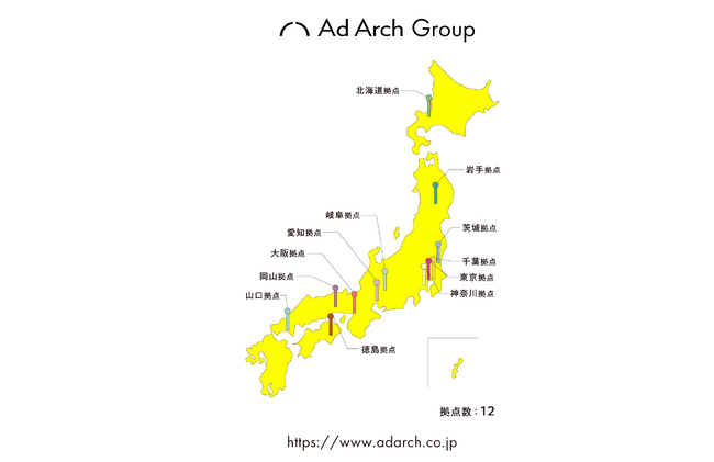 私たちアドアーチグループでは、グループ全社連携体制のもと、各エリアに適した制作物・プロモーション施策を各地域に近い距離感でご提供します。