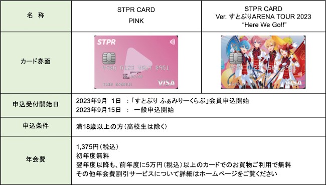 2023年9月15日より一般申し込みを開始しますが、すとぷり公式ファンクラブ「すとぷり ふぁみりーくらぶ」の会員さまを対象に2023年9月15日の一般募集開始に先がけて、2023年9月1日から「STPR CARD」の申込が可能です。