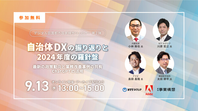 【内閣官房や自治体初、ChatGPT全庁的活用の横須賀市が登壇】自治体DXの振り返りと2024年度の羅針盤を9月13日(水)オンライン開催