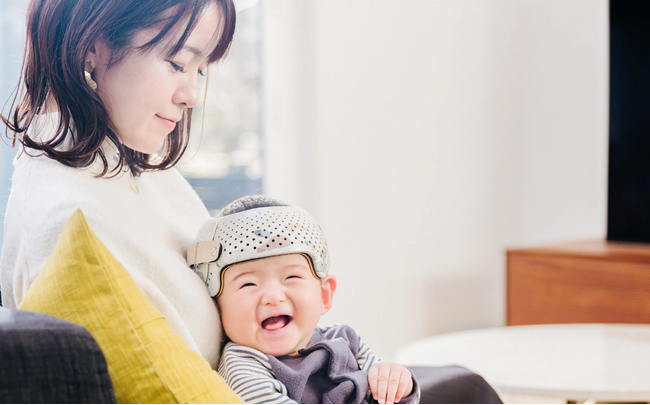 赤ちゃんとご家族が負担なく治療が受けられ、また医師が快適に治療を提供できるように設計・開発された日本製の頭蓋形状ヘルメットです。一人ひとりの頭の形状に合うように完全オーダーメイドで3Dプリンターで製造しています。