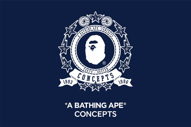 今回のコレクションのために制作された象徴的なグラフィックは、“APE HEAD”に「BAPE(R)︎」の創業年である“1993”と「Concepts」の創業年である“1996”を記しました。