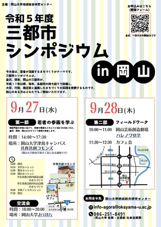 【岡山大学】令和5年度 三都市シンポジウム in 岡山〔9/27,水 28,木〕