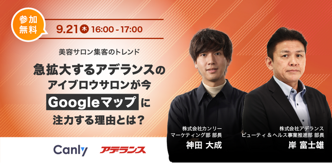 【美容サロンの経営・マーケティング向け】「急拡大するアデランスのアイブロウサロンが今Googleマップに注力する理由とは」セミナーを9/21に開催決定!