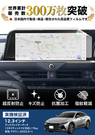 Fun Standard株式会社(本社:福岡県大野城市)が展開するモバイルアクセサリーブランド「BELLEMOND(ベルモンド)」は、トヨタ クラウン 12.3インチナビ専用フィルムを発売しました。超反射防止加工を施したフィルムは、反射や映り込みを軽減するだけでなく、キズ防止、指紋軽減などの機能も付いています。