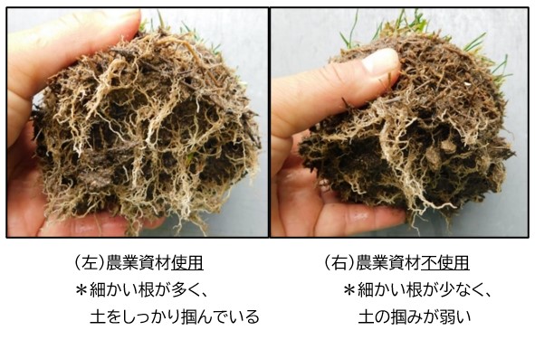 芝の根張りが良くなり、耐暑性、擦切れ抵抗性に効果があると感じています。今後はこの成果を定量化、可視化も進めて、より良いグラウンド管理を行っていきたいと考えています。