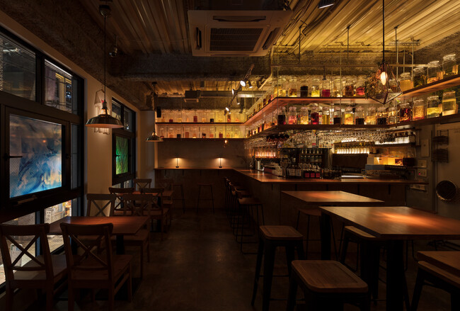 フレグランスオイルやアパレルブランド、アクセサリーなどアーティストとのタッグ商品の販売など様々なコンテンツも展開中な肩肘張らない気さくな酒場。