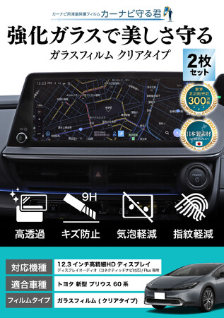 新しいトヨタの プリウス60系 12.3インチ ディスプレイオーディオ専用ガラスフィルムです。貼りやすい固定用シール付きで、お得な2枚セット。カスタムパーツのお供に