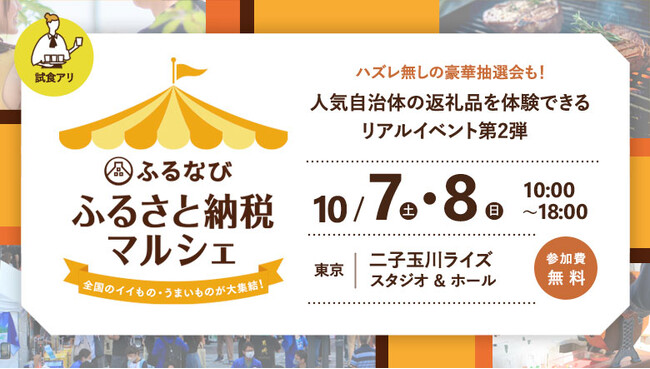 【ふるさと納税制度改正後初!30自治体が二子玉川に大集結!】リアルイベント「ふるなび ふるさと納税マルシェ」が10月7日(土)・8日(日)に開催決定