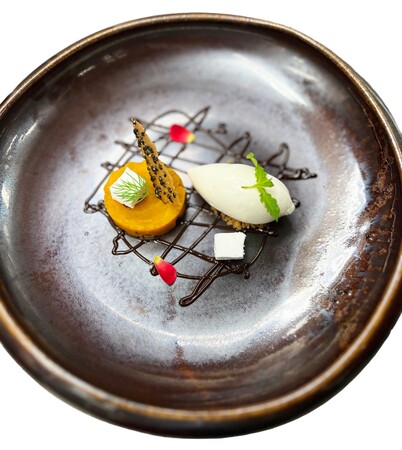 夕食は、新バスク料理「Rias by Kokotxa-リアス バイ ココチャ-」のコース料理をご用意。〆のデザートは本宿泊プラン限定のハロウィン仕様でご提供いたします。