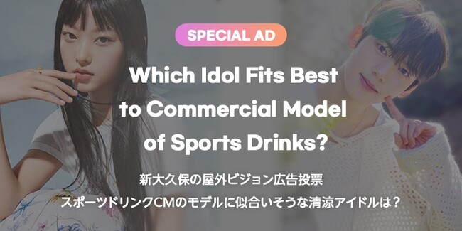 2023年8月21日(月)から8月27日(日)までの期間で開催した、「スポーツドリンクCMのモデルに似合いそうな清涼アイドルは?」の投票において1位に選ばれたThe WindのJang HyounJoonさんの応援広告が、新大久保のK-PLAZA 1号館の屋外ビジョンで上映中です。