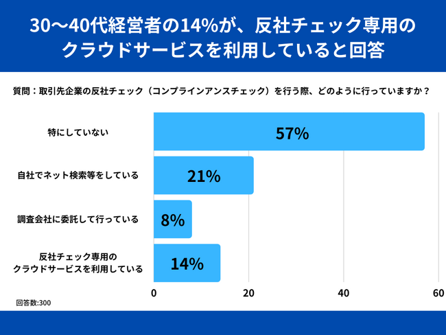 30~40代経営者の14%が、反社チェック専用のクラウドサービスを利用していると回答【反社チェックに関するアンケート】