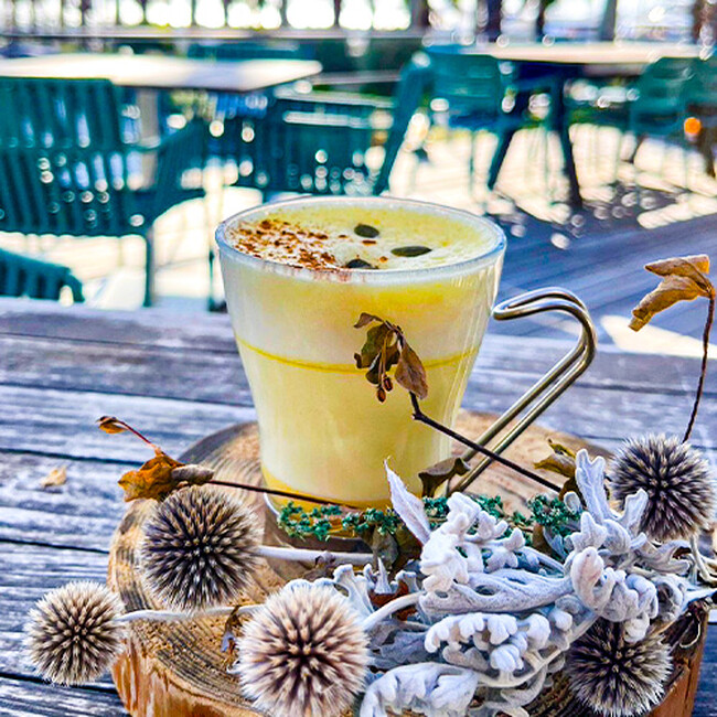 カボチャペーストと生クリームを組み合わせたオリジナルのカボチャピューレにエスプレッソ、温めたミルクを合わせたホットドリンク。仕上げにシナモンの香りをプラスしました。少しずつ空気がひんやりと澄んできたこの季節に、クリーミーなカボチャの優しい味が身体に染みわたります。