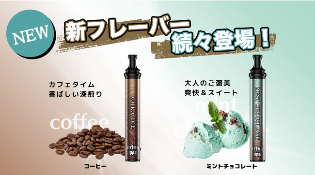 スマートシーシャ『ATING BAR(エーティングバー)』の日本総代理店、株式会社トランスペクト(本社:東京都千代田区、代表取締役社長:小林広記)は、新フレーバーとなる「コーヒー」と「ミントチョコレート」の販売を開始しました。