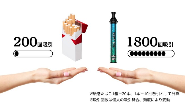 ATING BAR1800回吸引1本で、たばこ約9箱分の吸引回数に相当します。