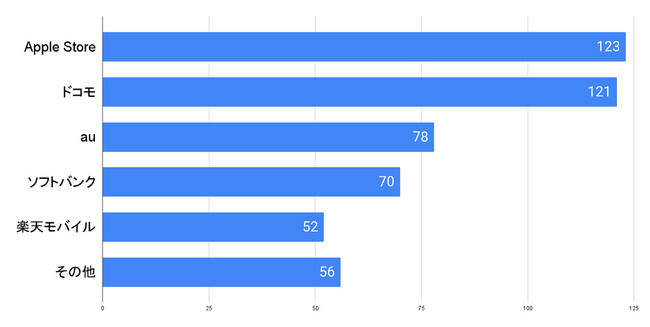 「もし、iPhone 15を購入するなら、どこで購入したいですか?」という質問に対して、一番人気だったのは「Apple Store」、続いて「ドコモ」でした。